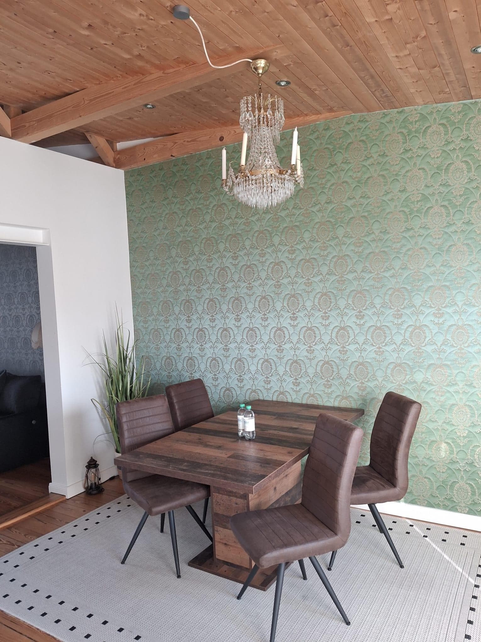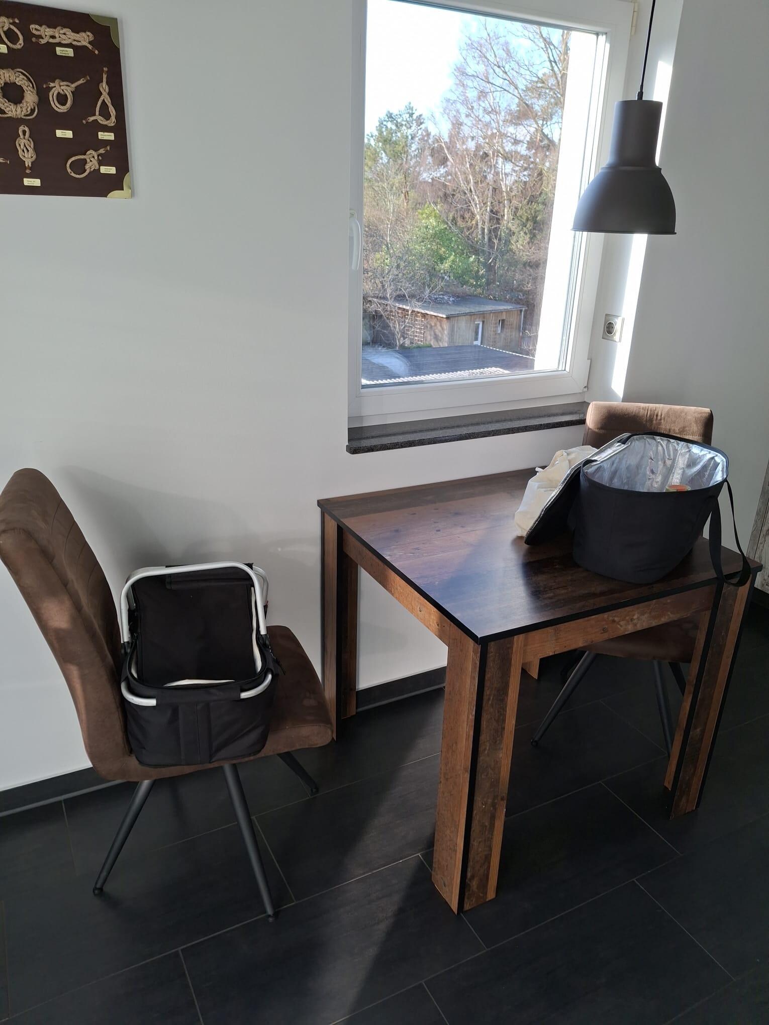 Die Ferienwohnung eignet sich für bis zu 3 Personen und befindet sich im 1. Obergeschoss (über eine offene Metallaußentreppe erreichbar). Der große Wohnbereich mit den hohen Decken lädt mit großem TV und Schlafsofa zum Verweilen ein. Die separate Küche lässt das Herz des Hobbykochs höher schlagen: Geschirrspüler, Herd mit Ceranfeld und Bratmulde, Backofen, Dampfgarer, Kühlschrank mit Gefrierfach, Dunstabzugshaube, Wasserkocher, Toaster, Filterkaffeemaschine und sehr viele Kochutensilien. Von der Küche und auch vom Esszimmer aus haben Sie Zugang zum geschützten, möblierten Balkon.