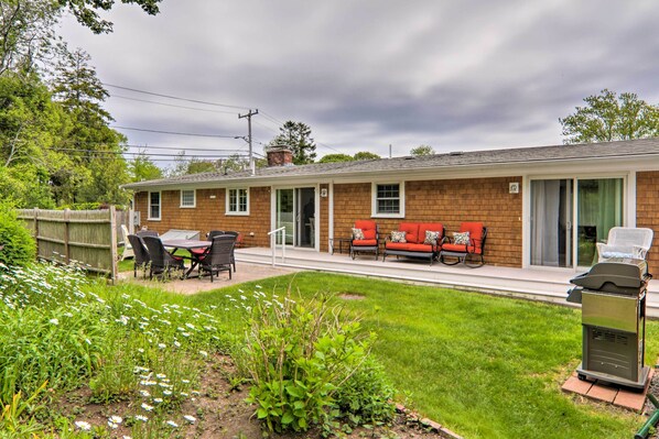 With an ideal location and a sunny beach-inspired interior, this 3-bedroom, 2-bath vacation rental is perfect for your family’s summer trip to Cape Cod! Spend your days relaxing on the white sands of Craigville Beach, head to Main Street Hyannis for lunch on the restaurant patios and boutique shopping, or take a ferry ride to Martha’s Vineyard. All the perks of this quaint cottage are ready for your relaxation, including a gas grill and a lovely backyard garden!