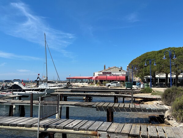 The nearby town of Hyères is easily accessible by bicycle via a dedicated bike path. Several restaurants are located in the waterfront area.