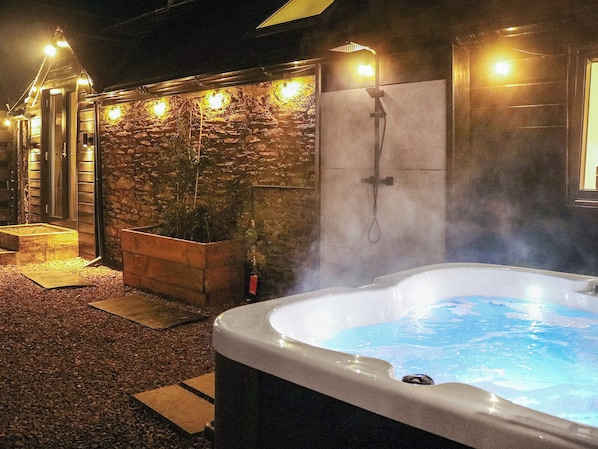 Separate Toilet.. Under floor heating throughout, electricity, bed linen, towels and Wi-Fi included. Travel cot and highchair (on request). Welcome pack. Secluded garden with patio, barbecue and garden furniture. Hot tub (private). Outdoor shower. Grounds with courtyard (shared). Bike store. Private parking for 2 cars (additional on-site parking available). No smoking.. The Byre is accessed via an agricultural undressed access way owned by the adjacent farm house. The Byre forms part of a complex of 5-star properties. The owners live on site in The Old Granary.
