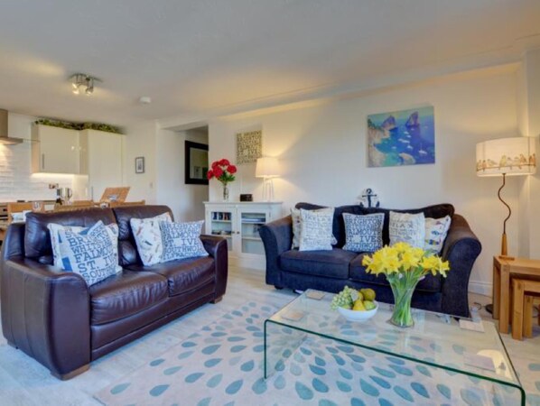 Blick über die Stadt und die Küste in Richtung des National Trust Torrs. Ein kurzer Spaziergang durch das Gartentor führt Sie zum privaten Eingang. Innen fühlt sich ruhig und einladend mit einem