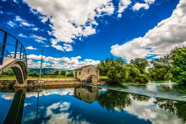 Diese Villa am See bietet einen Privatpool und einen Balkon