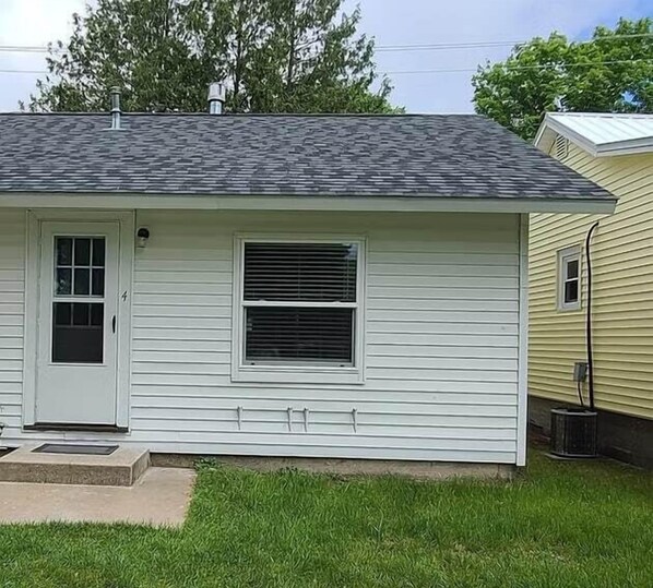 A charming one-bedroom cabin, ideal for a peaceful getaway.​ Includes a queen bed in the bedroom and a sofa sleeper in the living area, suitable for up to 4 guests.