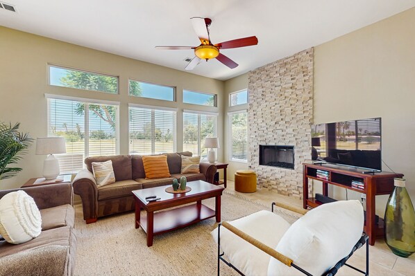 Stay comfy year-round with central AC and a gas fireplace — all wrapped in an easy-access, family-friendly layout. Whether you're festival hopping, perfecting your backhand, or just soaking up the desert vibes, this place brings the good times and then some.