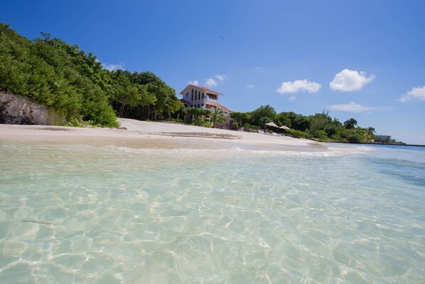 We had an amazing time celebrating our parents' retirement. There were 4 kids in our group all under the age of 6, the beach could not have been more perfect for us. Clear water, relatively shallow and gradual slope, very gentle waves, comfortable temperature, plenty of beach toys, totally private and protected. The house staff was wonderful, very kind and seemed genuinely interested in making us comfortable and happy.