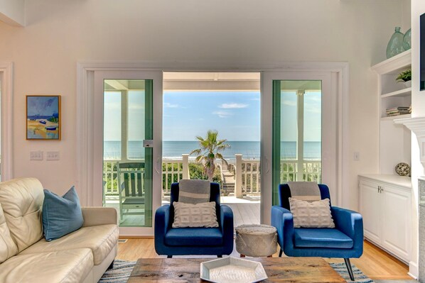 'Seascapes' 714 Ocean Blvd, is a classic oceanfront home located in the prestigious Ocean Blvd. side of the island which places the beach just steps from your porch and back yard. Walk just three blocks to the variety of dining options and stores located at the "front beach" downtown of Isle of Palms. This home has six bedrooms and four bathrooms as well as a multiple oceanfront porches and a private pool. The home has three king bedrooms, a room with a queen bed, a room with two bunk beds (Twin over Double) and a room with two double beds that is inside the upstairs king bedroom and shares a bathroom. Three of these King bedrooms have spectacular ocean views and porch access. The bathrooms were just renovated to include large walk-in showers and beautiful tile work. .