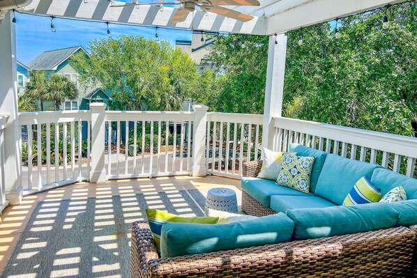 Welcome to Opal House, a gorgeously furnished & decorated four bedroom home within the premier gated Ocean Point community of Wild Dunes resort. Opal House provides families a comfortable & relaxing home-away-from-home to relax, unwind and enjoy one another's company during their Wild Dunes and Charleston adventures. Guests of Opal House enjoy sweeping water views of the lagoon behind the home and the home's reverse floor plan layout -- the living room, dining room and kitchen areas are all on the top floor of this home, giving you an abundance of natural light in these rooms from all the windows and vaulted ceilings. There are also several outdoor balconies, patios and roof decks available for your enjoyment in this comfortable home.