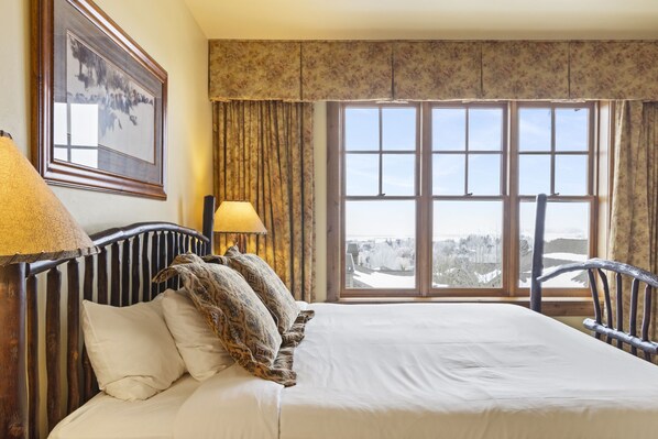 Diese komfortable Wohnanlage mit zwei Schlafzimmern und zwei Bädern verfügt über eine Küchenzeile, einen Schreibtisch und einen Kamin im Murphy-Schlafzimmer, das gleichzeitig als Wohnzimmer dient. Das Grand View 494S ist die perfekte Ausgangsbasis für alle, die sich die köstlichen Restaurants von Jackson Hole gönnen möchten. Entspannen Sie auf Ihrem privaten Deck und beobachten Sie den Sonnenuntergang nach einem langen Tag auf der Piste oder beim Wandern!