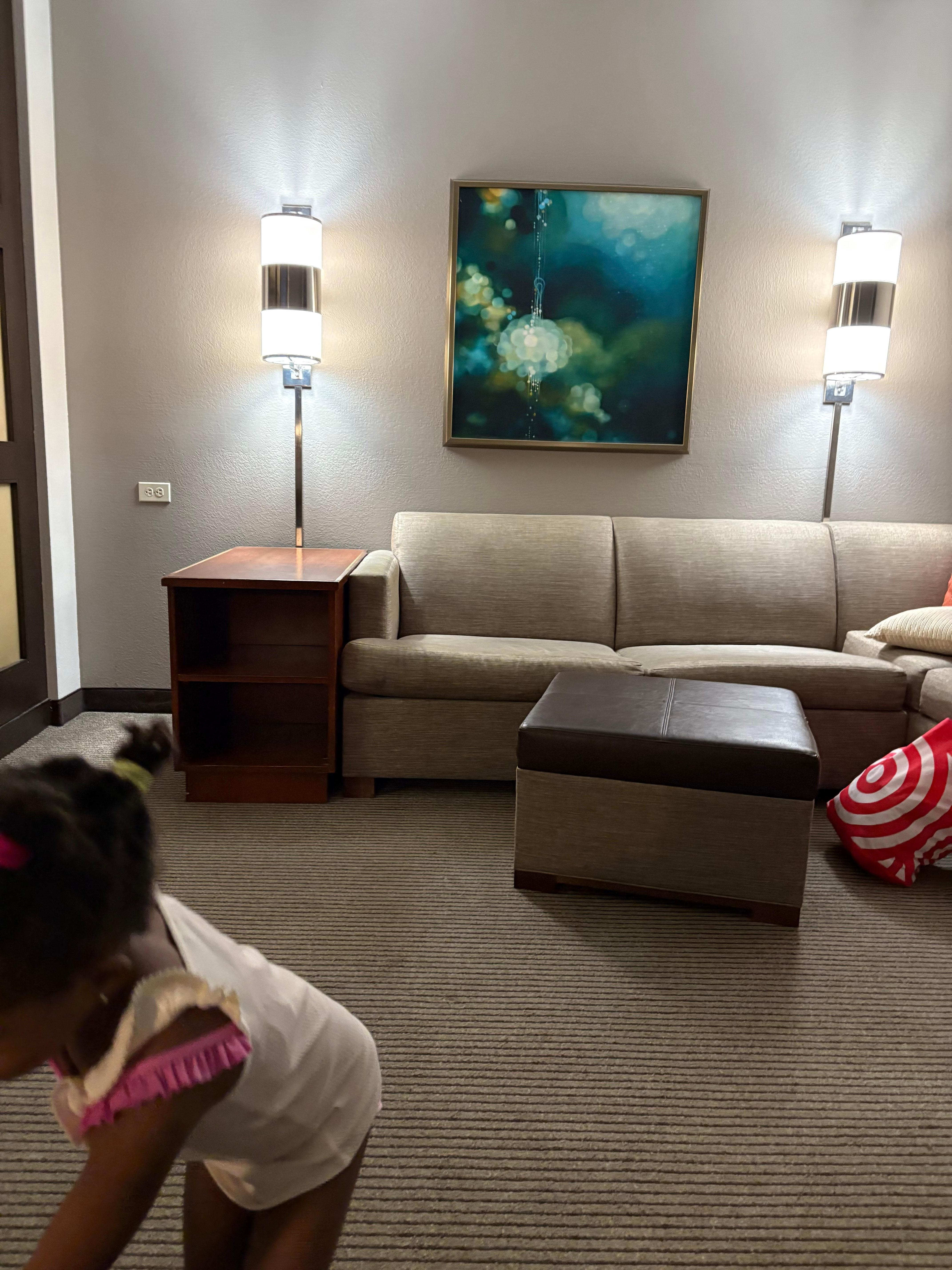 This was by far my favorite Hyatt we have ever been to. Hotel staff was the nicest I’ve encountered, breakfast was delicious and the hotel was spotless and smelled great, no old mildew smell. I also noticed that house keeping came after day 1 instead of after day 2. Small laundry room with only 1 washer and dryer but aside from that this place is a rockstar. Don’t hesitate to book. They also have tons of food options near by including Waffle House and dennys