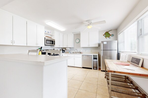 Walk to gorgeous white sands in minutes -- this sparkling coastal hideaway is just across A1A from the beach. Your ground-level 2BR unit is also close to local eateries, shops, and golf courses.