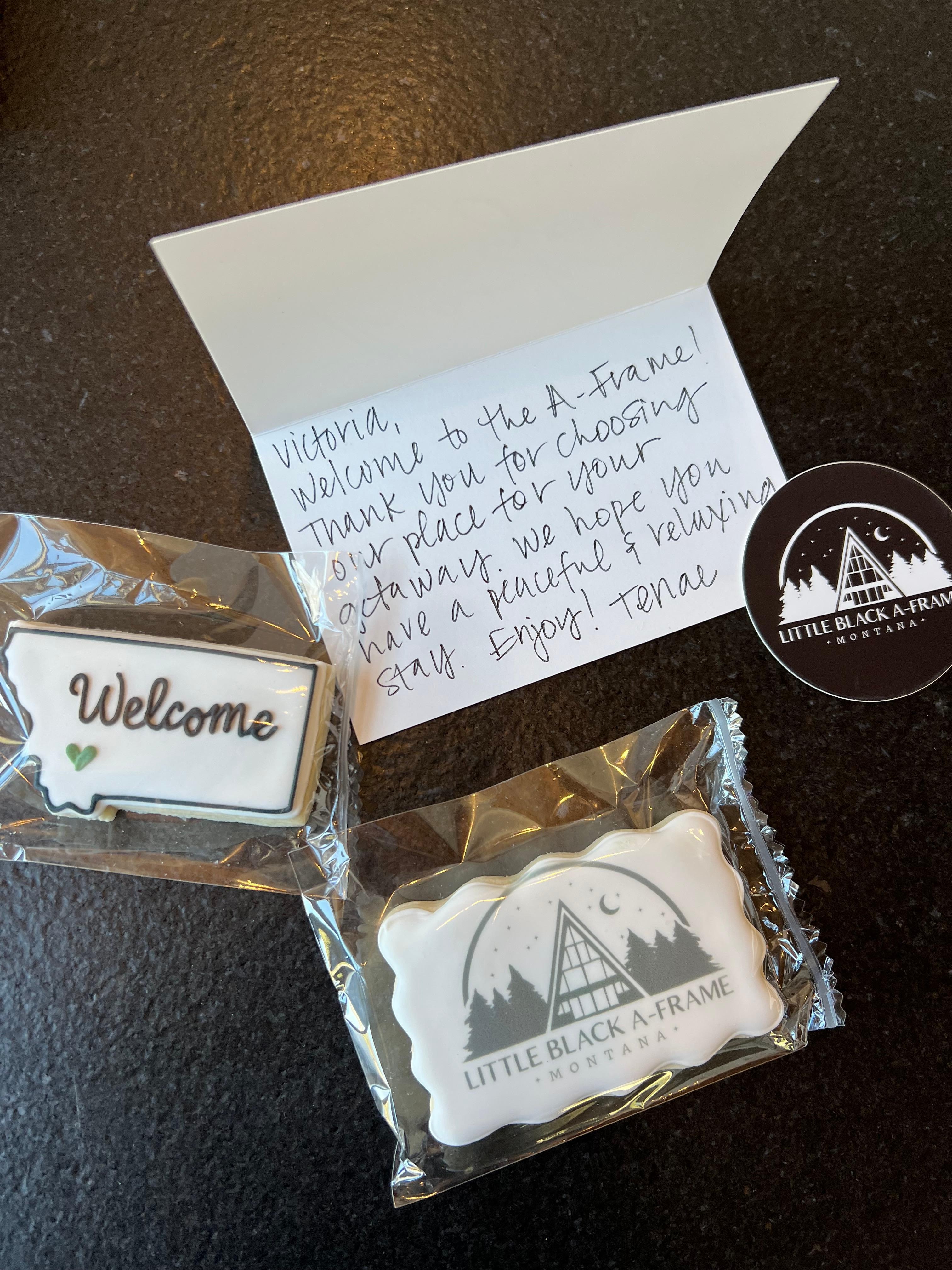 "Went to Montana for our honeymoon! The Little Black A-Frame was very private and secluded. Tenae has a gift of hospitality. We felt so much peace, comfort and splendor at the cabin... we only left once. We enjoyed the hot tub under the stars, cozied up by the fire, cooked in the kitchen & relaxed in the huge king bed in the loft. We felt very loved and cared for." Julie & Kondwani - S. Carolina