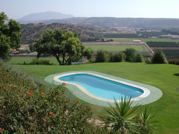 Die große Terrasse kann zu jeder Tageszeit genutzt werden. Man findet immer ein schattiges Plätzchen und kann dabei trotzdem in die Weite schauen. Der Pool ist gut gepflegt und hat im Sommer eine angenehme Temperatur. Er lädt zum Schwimmen und Spielen ein.