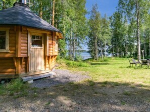 Dieses Ferienhaus am See bietet eine Küche und einen Balkon