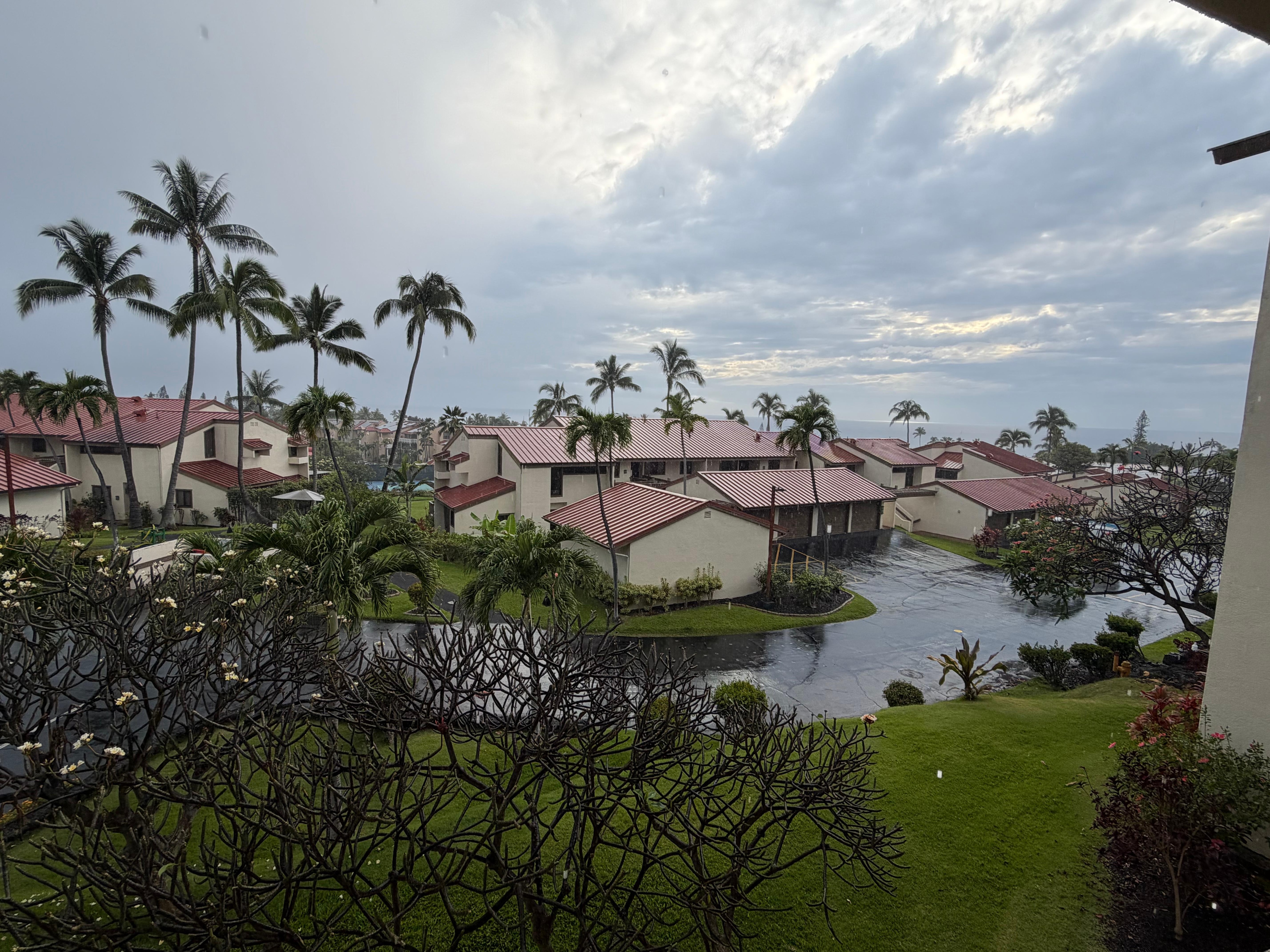 The resort was well kept and had good security. The unit was roomy and had an expansive balcony porch for alfresco eating or just enjoying the view and listening to the birds. Decor style is a little dated, but in good condition. Although on the far edge of Kona, it was within walking distance to a small shopping mall for groceries or dining. The resort had a couple of pools and a nice restarant. We were very satisfied with our decision to stay here..