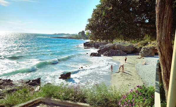 Es gibt einige schöne Strände in der Umgebung, die ideal zum Schwimmen, Schnorcheln und Sonnenbaden. Der nächste Sandstrand und eine Taverne sind nur 250 m von der Villa entfernt. Die umliegende Landschaft und Hängen des Taygetos Berge bieten ideale Möglichkeiten zum Wandern und Erkunden. Im nächsten Dorf Agios Nikolaos, 1500 km von der Villa entfernt, gibt es Geschäfte, Restaurants und Cafés, eine Apotheke und ein Gesundheitszentrum.