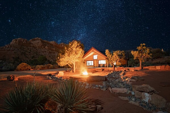 Find your perfect basecamp in Kanab! This modern 2BR cabin + loft sleeps 6 comfortably, with stunning red rock views, a covered patio for BBQs, a fully appointed kitchen w/top of the line appliacnes & more. Plenty of parking for UTVs & trailers — adventure awaits w/Grand Canyon, Zion & Bryce Canyon nearby! Unwind w/yard games, cozy nights by the fire pit, endless stargazing under the dark skies of Kanab & all the comforts of home. Ideal for families & outdoor lovers seeking a peaceful escape.