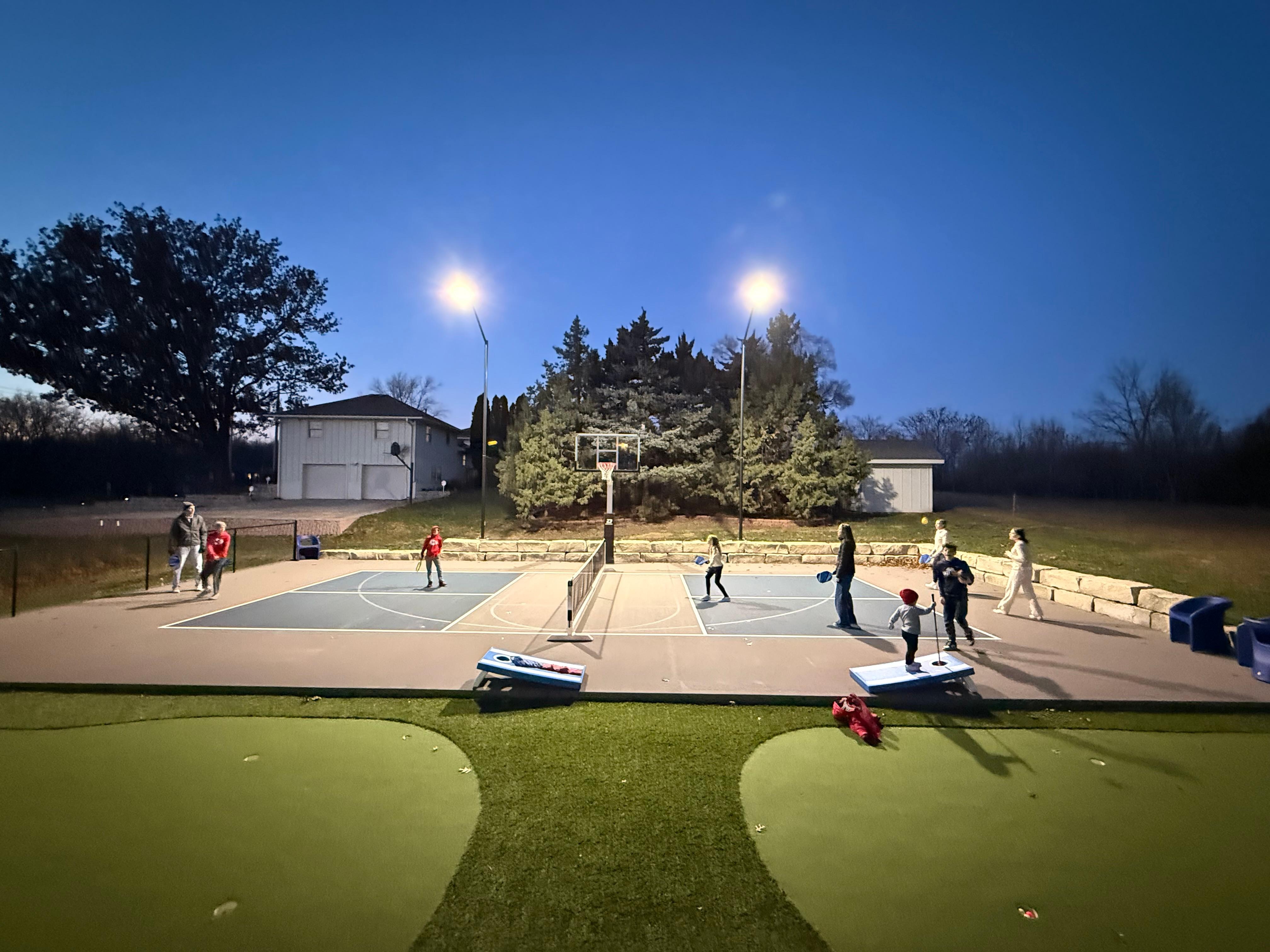 We held our family Thanksgiving at the house, hosting a wide variety of ages, and the home was a great fit. The outdoor sport court was used almost every waking hour for pickleball or basketball and the arcade was a big hit too. Our whole crew fit around the dining room table and the kitchen was sufficient for making the big meal- a little cramped but well equipped. Road noise was noticeable, but nothing an extra nightcap didn’t fix. The upside of the location is that the home is close to a major shopping area.A major plus to the house was the communication w the owner, Doug. He was timely with information and replies and went above and beyond to decorate the house before we arrived w a tree and greenery. Thanks for making the week so easy!