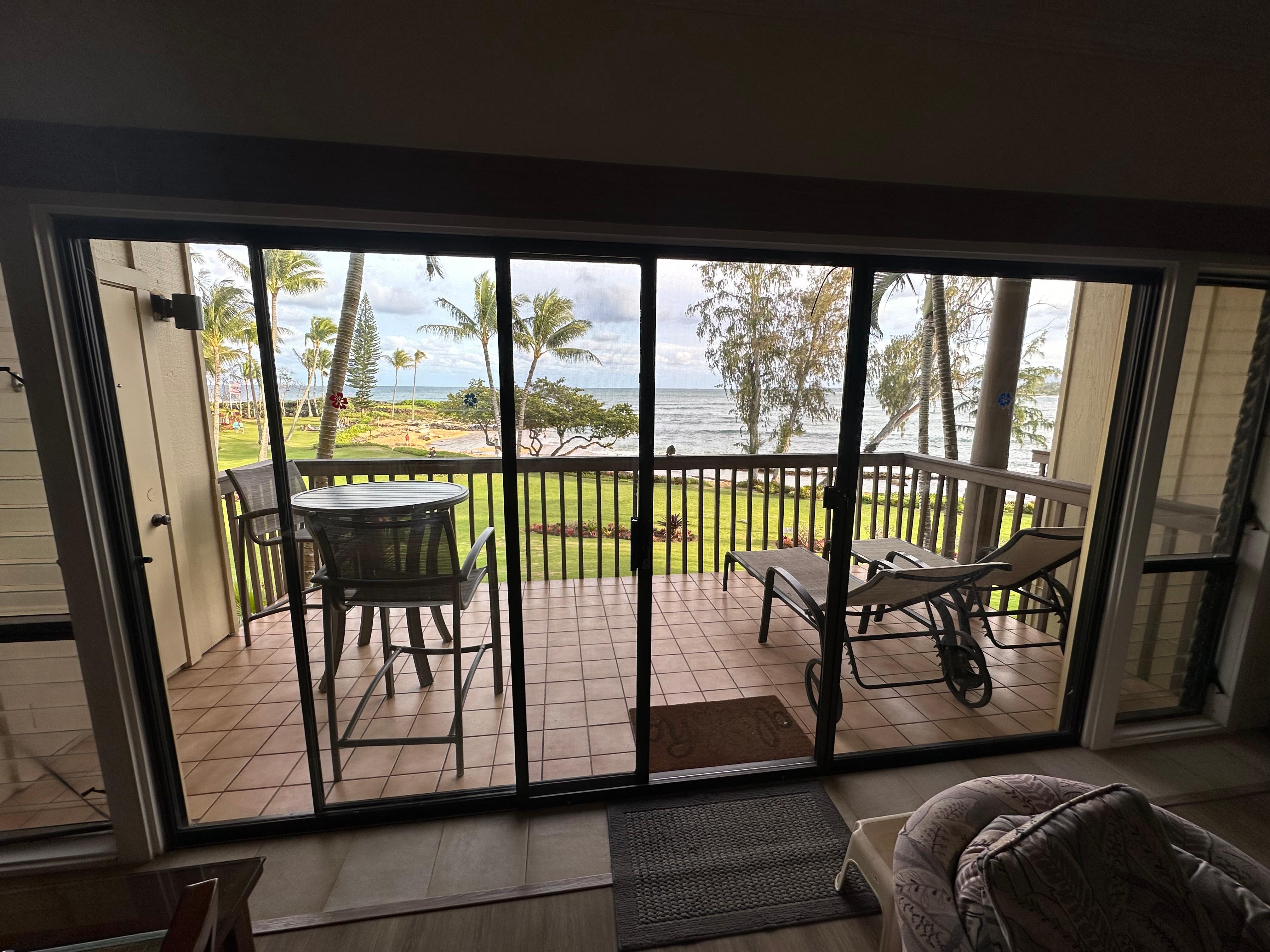 Depending on the time of year of your stay, from the lanai you may get to admire breaching whales off the coast, observe sea turtles swimming or lounging on the beach, watch kite surfers flying through the air, or you may even get to cheer on outrigger canoe race or two! Plus, in addition to the unobstructed view, guests appreciate the enhanced security and privacy that a 2nd floor unit provides. (Please note - the unit is up one flight of stairs - no elevator). And, when it's time to get out and play, you can walk to nearby shops, restaurants and beaches, rent kayaks and bikes, or hop in your car, private tour, or Kauai bus and head any direction for a day of fun.