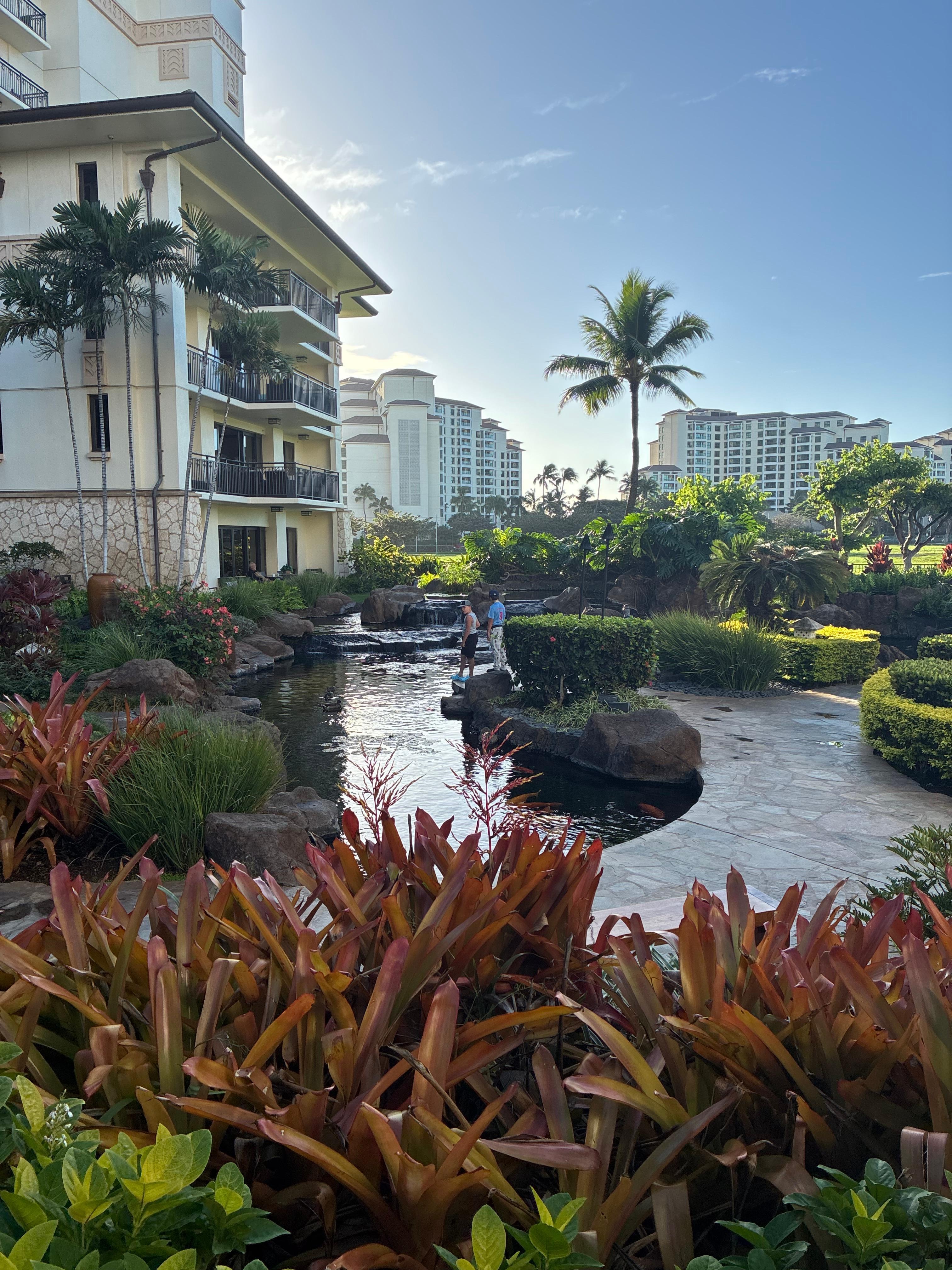 Dreaming of a memorable yet affordable Hawaiian vacation? Our Villa is calling you! It is located on the sunny Western shore of Oahu, and was built as a paradise for family-oriented beach lovers. It is landscaped with beautiful palm trees, koi ponds, a sandy-bottom kid's pool, an Olympic-sized lap pool, a family pool, and owner's leisure lounge, indoor fitness center and a Tiki Beach Bar. The Championship Golf Course and the Four Seasons Spa and Sport Clubs are nearby. The lagoon is a swimming paradise for beach lovers of all ages. There are minimal waves and crystal clear water safe from large fish. The lagoon is filled with small colorful fish and the resident turtles, perfect for snorkelling. The condo is luxuriously furnished to provide comfort and pleasure to prospective guests. It is approximately 1386 sq' and equipped with a "Roy Yamaguchi" designed kitchen featuring stainless steel appliances and a SubZero fridge, to inspire your gourmet cooking experience. The spacious dining and living rooms are furnished with cozy, comfortable furniture, and overlook an open field to the Ko-Olina Golf Course on the left, Marriott Hotel in the distance over the lanai, and the Pacific Ocean on the right. We even have an office nook with a new Brother Printer for you to print your boarding passes, etc; The Master bedroom has a large and comfortable California King-sized bed; the master bathroom has a deep soaking tub, marble walk-in shower and dual vanities. The guest bedroom has 2 Twin Beds that can be combined into a King-sized bed. We also have one Queen pull-out sofa beds for extra guests in the Living Room. The Guest Bathroom has a combo bathtub and shower. If you plan to rent a car, you will have your own underground parking space at no extra charge.
