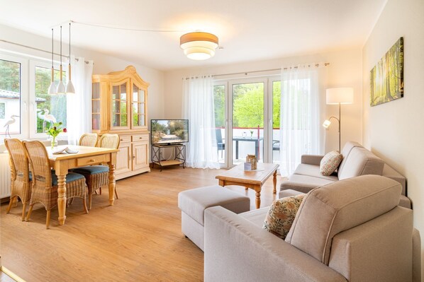 Die voll ausgestattete Küche lädt dazu ein, Ihre Lieblingsgerichte zuzubereiten. Hier finden Sie alle notwendigen Geräte und Utensilien, um Ihre Mahlzeiten ganz nach Ihrem Geschmack zuzubereiten. Genießen Sie Ihre Köstlichkeiten dann am Esstisch im Wohnbereich oder auf dem Balkon, während Sie die frische Ostseeluft und die malerische Umgebung genießen.