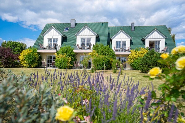 Die 2-Raum-Ferienwohnungen 01,02,05 und 06 befinden sich im Erdgeschoss und verfügen alle über eine Terrasse zum Garten.