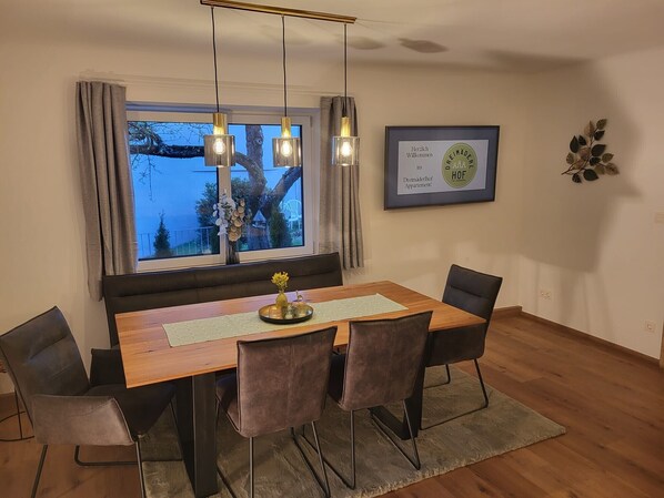 Im Herzen von Karlstetten bietet das Dreimäderlhof Appartement auf 90 m² komfortablen Wohnraum für bis zu 6 Gäste. Es verfügt über 2 Schlafzimmer, 1 Badezimmer und eine voll ausgestattete Küche. Highspeed-WLAN (auch für Videotelefonie), Heizung in allen Räumen, zwei Fernseher und ein großzügiger Wohnbereich sorgen für einen angenehmen Aufenthalt. Für Familien stehen Babybett und Hochstuhl bereit. Filter- und Kapselkaffeemaschine sind vorhanden. Gerne stellen wir auch nur ein Doppelzimmer mit Badezimmer auf Anfrage zur Verfügung.
