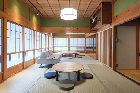 / Near Katori Shrine Enza is a traditional Japanese guesthouse Situated within the sacred precincts a stroll through the quiet village surrounded by the shrines woods takes about 20 minutes to reach Katori Shrine The property spans 1200 m2 with the building 200m2 At the center of the inn stands a 190cmdiameter sunken round table creating a natural gathering spot where large groups can sit in a circle A grand piano is placed in the living room