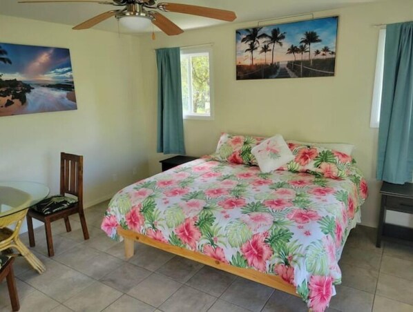 Our suite is the perfect landing pad for your Big Island Stay. The home is just a short 15 minute walk to the beautiful ocean cliffs where you can find seaside hikes for all levels of skill. while attached to the main house the suite has private parking and a separate entrance. Equipped with a small kitchenette and many essentials to make your stay comfortable. Be sure to relax in the luxurious jetted tub after your long day of adventure. Or take a stroll through our 2400' tropical greenhouse.