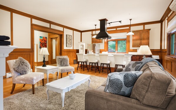 Machen Sie eine Zeitreise im Cadder House, einem Herrenhaus aus dem Jahr 1908, das in vier hübsche Eigentumswohnungen umgewandelt wurde. Dieser einzigartige Rückzugsort ist von üppigen Bäumen und Gärten umgeben und nur 15 Gehminuten von der Innenstadt von Kelowna entfernt. Die Holztreppe und das Foyer führen Sie zurück ins 20. Jahrhundert. Jede der modernen, privaten Wohneinheiten besticht durch einen Charme der alten Welt.