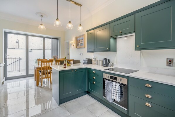- Induction hob, electric oven, microwave, slimline dishwasher, fridge/freezer, washing machine and coffee machine
