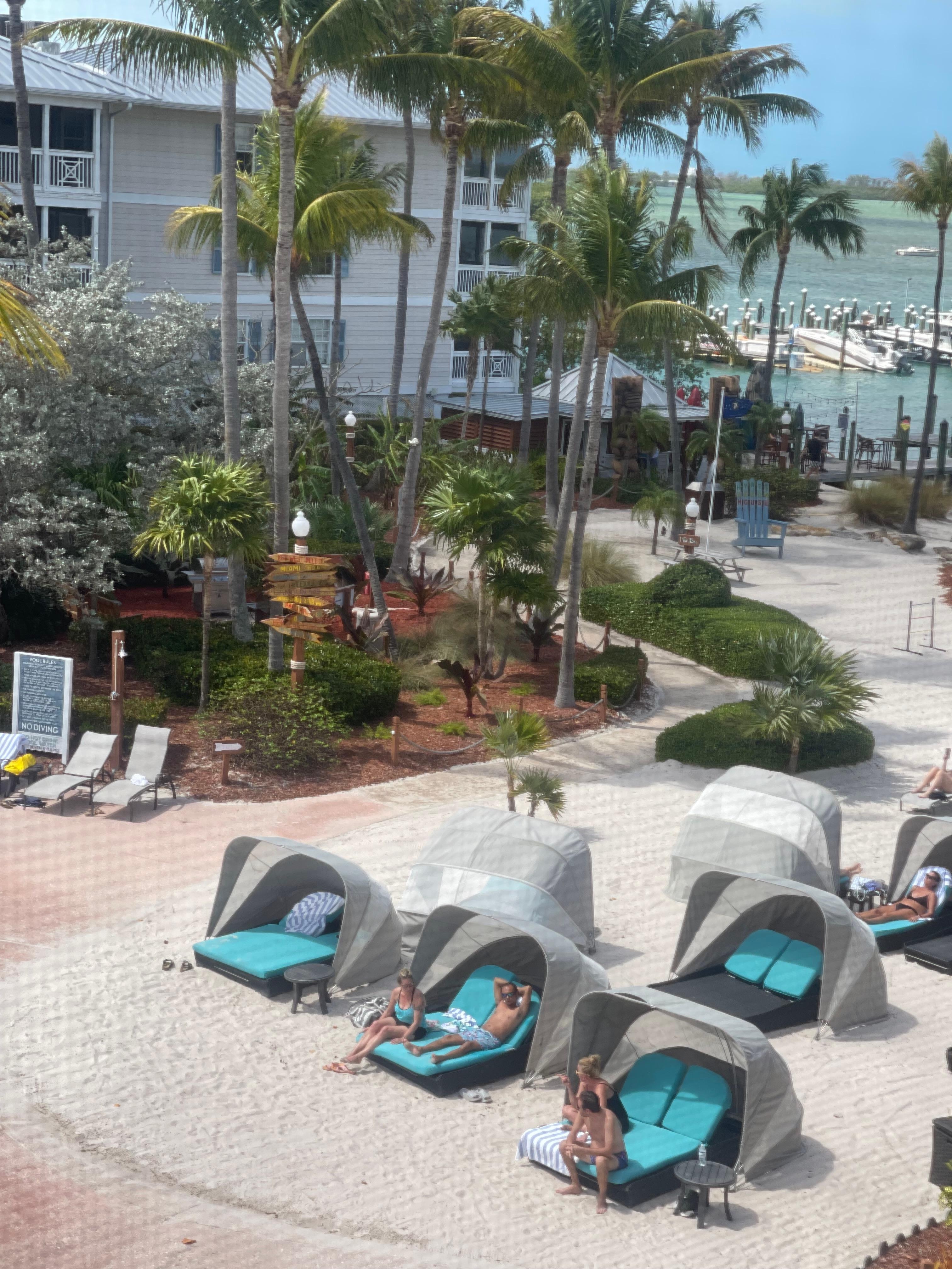 Amenities include an outdoor pool, a jacuzzi, a private beach, dock, concierge, and a delicious restaurant with Bay views. There's also a bar, concierge, business center, complimentary parking, and onsite grills.