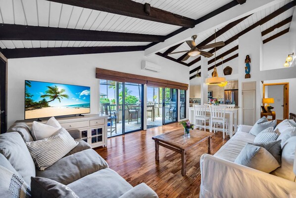 This was one of the best home share rentals I've ever done. The house is in excellent condition. The balcony looks down onto the water below across a beautiful grass and palm tree slope. This is an extremely idyllic property. The house comes with the beach essentials, 4 chairs, an umbrella, a cooler (or two, I think there was a big one we didn't use), and two sets of snorkeling gear. We took these to Big Beach and found the most scenic beach we had ever visited. Checking in, we got a little lost, because the GPS takes you to an address one road west of the actual street. We spent some time trying to find it initially, but otherwise the entire stay was excellent.