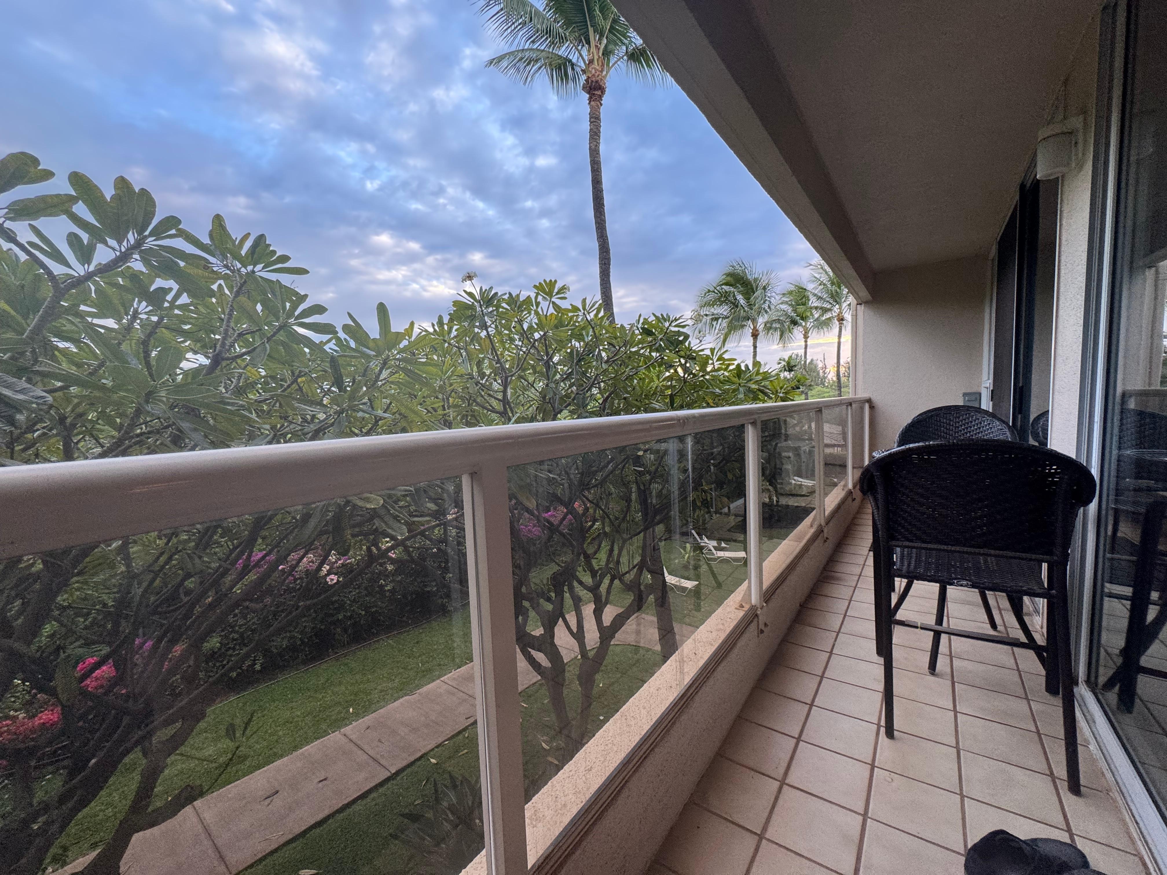 • Lanai mit Blick landeinwärts, die untere Pool und ein wenig Peek-a-boo des Ozeans