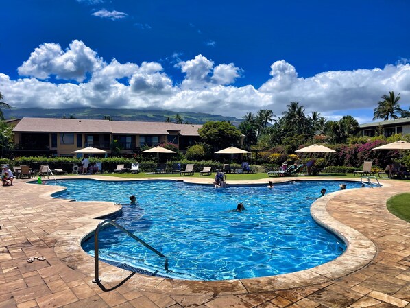 Forget the hassle of loading the car or hunting for parking. We provide everything you need for the perfect beach day! Grab our beach cart—stocked with a pickleball set, sand toys, boogie boards, chairs, and an umbrella—and take a short stroll to the sand. Within minutes, you can be lounging at the beach pavilion, swimming in our main resort pool, building sand castles on our beach, snorkeling vibrant coral reefs, exploring tide pools, or walking the scenic 3-mile Wailea Beach Path.