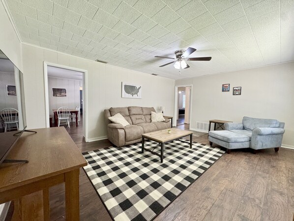 Experience Kilgore like a local in this 3-bedroom house. With 1 king bed, 2 queen beds, and 2 bunk beds, there's plenty of space for everyone to relax. Hometown Hideaway offers the perfect blend of small-town charm and country calm. Tucked just minutes from Main Street, this peaceful home gives you quick access to local diners, shops, and attractions-while still offering space to breathe. Whether you’re sipping coffee on the porch or unwinding inside with all the comforts of home, this space is designed for true relaxation. Great for couples, solo travelers, or families. It's easy to see why you'll be able to unwind at our place.