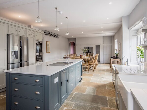 Kitchen/dining room: Woodburner, Electric Oven, Electric Hob, Aga, Combi Microwave/Oven/Grill, American Fridge Freezer, Fridge/Freezer, Dishwasher