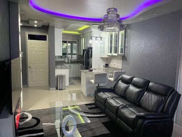 This unique place has a style all its own with modern decors and styles,smart home to your comfort ,enjoy your stay in super central ,comfortable,quiet ,safe and convenient luxurious condo just in the middle of the city of Kingston. This apartment as just been built less than a year ago very new and modern to suit you and your family comfort .this complex is located on Dorsetshire Ave Kingston 8 the perfect get away spot without even getting away right in the middle of the City 🌆 The space 5mins from halfway tree,7mins from new Kingston,close to all the clubs and restaurants ,very central and friendly area,clean and spacious environment,peaceful and quiet complex im sure you’re gonna enjoy your staycation,baecation, whatever you’re celebrating I will provide the comfort. The property boast security and protection with 24/7 surveillance,a security camera at the front of apartment door + security access remote main gate,will access key cards for entrance doors.
