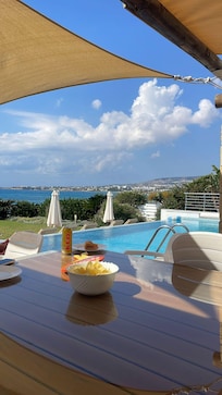 Warm pool, beautiful view, quiet location, enjoy waves sound in your room)).