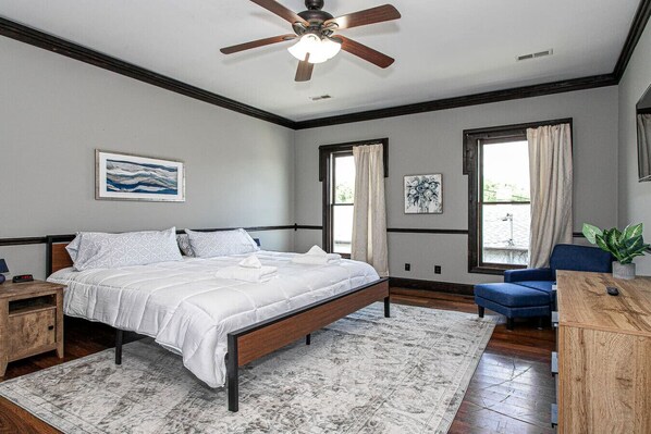- Master Bedroom 2 (Second Floor): King bed, cozy décor, high-quality linens, and a spacious layout with easy access to the game room.