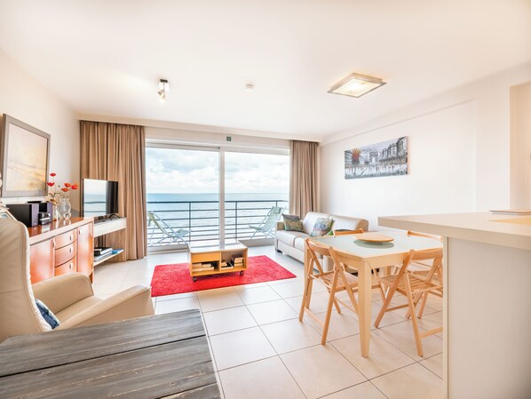 Hausbeschreibung: Les Petrels sixth in Koksijde ist eine geräumige und moderne 2-Schlafzimmer-Wohnung am Zeedijk. Sie verfügt über einen komfortablen Wohnbereich mit offener Küche, einen Balkon mit Meerblick, ein Badezimmer mit Badewanne und separater Dusche sowie eine separate Toilette. Ideale Lage in der Nähe des Zentrums mit Geschäften, Restaurants und dem Strand. Haustiere sind erlaubt. Perfekt für einen unbeschwerten und vielseitigen Küstenurlaub voller Natur, Kultur und Entspannung.