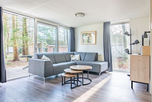 Eingebettet in den ruhigen, autofreien Ferienpark De Berkenhorst ist dieser gemütliche, neu gestaltete Bungalow der perfekte Ausgangspunkt für einen erholsamen Natururlaub mit der ganzen Familie – einschließlich Ihrer vierbeinigen Freunde! Mit direktem Zugang zum atemberaubenden Kootwijkerzand, Europas größtem Wandersandgebiet, liegt das Abenteuer direkt vor Ihrer Haustür. Ob Sie durch Kiefernwälder wandern oder Vögel beobachten – diese ruhige Lage bietet ein wahrhaft intensives Veluwe-Erlebnis, nur 2 km vom charmanten Dorf Kootwijk entfernt. Dieser komfortable, einstöckige Bungalow bietet Platz für bis zu 4 Erwachsene und 2 Kinder. Das Wohnzimmer verfügt über einen Flachbildfernseher für gemütliche Abende, während die offene Küche mit Kaffeemaschine, Mikrowelle und Geschirrspüler für schnelle Mahlzeiten ausgestattet ist. Die drei Schlafzimmer bieten Flexibilität mit einzelnen Boxspringbetten, die zusammengestellt werden können, und einem lustigen Etagenbett, ideal für Kinder. Das Badezimmer verfügt über eine ebenerdige Dusche (einige Einheiten haben eine Badewanne), und die Zentralheizung sorgt das ganze Jahr über für angenehmes Wohnen. Treten Sie hinaus auf Ihre private Terrasse und in den Garten – perfekt, um bei Ihrem Morgenkaffee die Waldluft zu genießen. Haustiere sind willkommen, und die umliegenden Wanderwege eignen sich ideal für lange Spaziergänge mit Ihrem Hund. Kootwijkerzand und die umliegenden Naturschutzgebiete bieten leinenfreie Zonen, und haustierfreundliche Cafés in Kootwijk und Apeldoorn sorgen dafür, dass auch Ihre vierbeinigen Begleiter wie Gäste behandelt werden. Ein friedlicher Kurzurlaub in der Natur erwartet Sie!