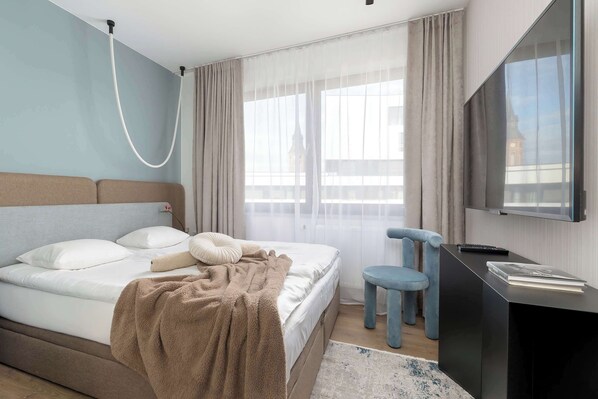 Dieses moderne Gebäude befindet sich in einer ruhigen und freundlichen Nachbarschaft und ist somit der perfekte Ort zum Entspannen sowohl für Liebhaber einer intimen Atmosphäre als auch für Liebhaber einer aktiven Freizeitgestaltung. Für motorisierte Gäste steht ein Parkplatz in der Tiefgaragenhalle zur Verfügung. Es gibt auch Fahrradständer auf dem Grundstück. Das Haus liegt direkt neben einem Park, den man in nur 3 Minuten zu Fuß erreichen kann. Drei nahegelegene Lebensmittelgeschäfte für die täglichen Einkäufe sind in 1-2 Minuten zu Fuß zu erreichen. Sechs nahe gelegene Restaurants und zwei Cafés sind in nur 1-8 Minuten zu Fuß zu erreichen. Der Tennisplatz, das Schwimmbad und die Bowlingbahn sind in 2-6 Minuten zu erreichen, der Wasserpark und der Flughafen in etwa 25 Minuten. Der Weg zum Einkaufszentrum, zum Bahnhof und zum Markt mit seiner schönen Architektur und den zahlreichen Denkmälern dauert 10-15 Minuten. Eltern, die mit kleinen Kindern reisen, finden einen Kinderspielplatz nur 2 Gehminuten von der Unterkunft entfernt.