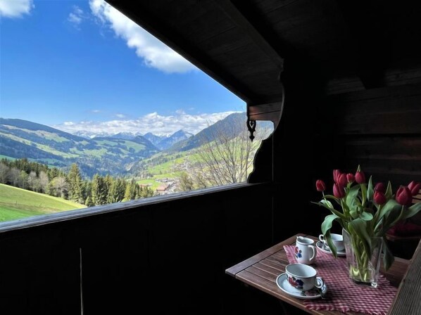 3-Zimmer-Wohnung 87 m2, im Dachgeschoss. Geräumig und hell, teilweise abgeschrägt, schön eingerichtet: offenes Wohnzimmer mit Sat-TV und Radio. Ausgang zum Balkon. 1 Doppelzimmer mit Waschbecken. 1 Zimmer mit 3 Betten. Ausgang zum Balkon. Offenes Esszimmer mit Essecke. Küche (4 Kochplatten, Backofen, Geschirrspüler, Toaster, Wasserkocher, Mikrowelle, elektrische Kaffeemaschine) mit Durchreiche. Bad/WC, sep. WC. Balkon, Südwestlage. Balkonmöbel. Sehr schöne Panoramasicht auf die Berge und das Tal. Zur Verfügung: Kinderhochstuhl. Internet (Wireless LAN, gratis). Bitte beachten: Rauchmelder.