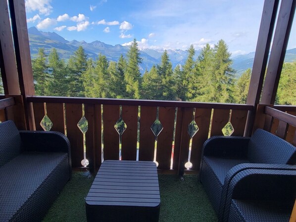 Sie befindet sich in der Residenz Bilboquet im 4. Stock (Nord) und bietet einen Balkon mit herrlichem Blick auf den Mont Blanc.