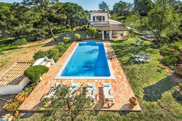 Surrounded by the luscious greenery this area is much beloved for, resides this 4-bedroom villa ready to welcome groups of up to 8. From the exterior, you'll be wowed by the expansive garden which holds the large 9x5m pool. We imagine you'll enjoy many days surrounding the glistening water, cooling off by taking a dip or enjoying a home-cooked meal under the covered terrace. Inside, the open-plan lounge and dining area are great for spending time catching up as a group before hitting the hay. In each of the bedrooms, you'll find ample space and storage as well as air conditioning. The two large double rooms also offer ensuite facilities whilst the twin rooms share a family bathroom.