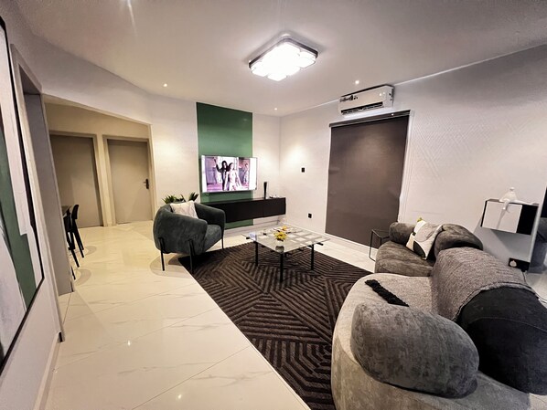 Elite 1BR: Near Airport,PS5, 24/7 Power & Wi-Fi
