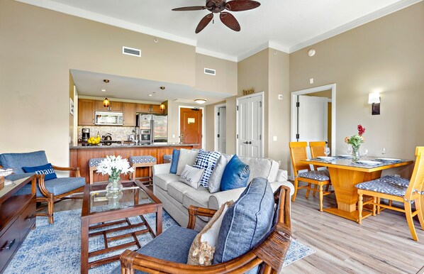 Das Hokulani 140 ist eine luxuriöse Suite im Erdgeschoss mit einem der größten Grundrisse von Honua Kai mit einem Schlafzimmer und einfachem Zugang zu den Pools, dem Strand und dem B. B.Qs. Ihre Gruppe hat viel Platz, um sich auf der großen angrenzenden Rasenfläche auszubreiten. Genießen Sie die Aussicht auf die majestätischen West Maui Mountains oder das üppige, gepflegte Gelände des Resorts von der herrlichen Lage dieser Suite aus.