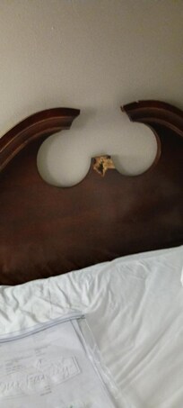 The room was in very poor condition. The furniture was visibly damaged and worn, and the mattress was lumpy and uncomfortable. The bathroom was unacceptable—there was sticky residue with hair in the shower, and the sink counter was heavily worn and needs to be replaced. Cleanliness overall was clearly not a priority.