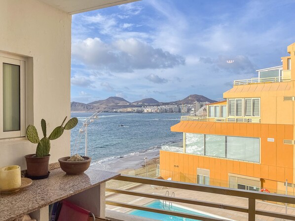 Diese gemütliche 40 m² gro ße Wohnung in Las Palmas de Gran Canaria, die Platz für 3 Personen und ein komfortables, helles Schlafzimmer bietet, ist der ideale Ort für einen unvergesslichen Aufenthalt direkt am Meer. Sie liegt in der ersten Reihe des berühmten Strandes Las Canteras und bietet atemberaubende Meerblicke von der privaten 3 m² großen Terrasse und vom Gemeinschaftspool, der praktisch direkt am Strand liegt, wo sich die Horizontlinie mit dem Wasser verschmilzt.