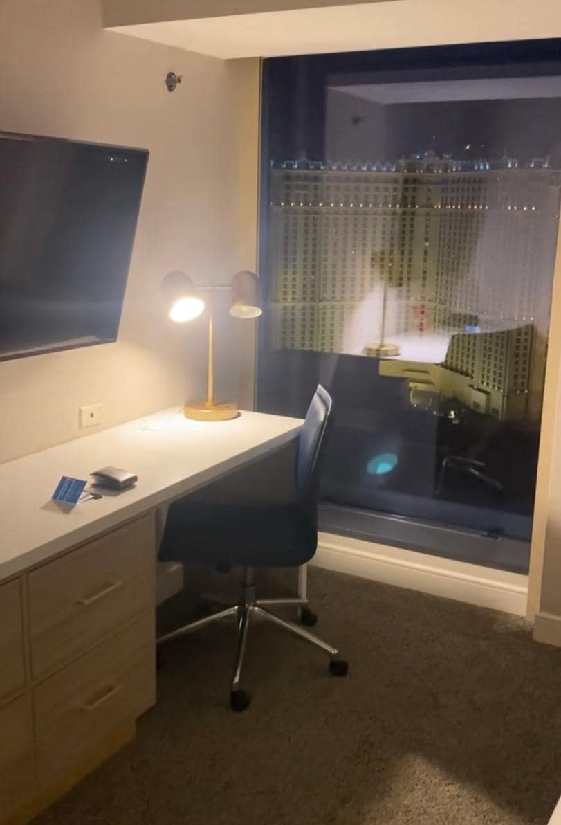 Communication with property manager was fantastic. We arrived at 7pm and check in was easy, never received any push regarding the timeshare aspect of the property. We enjoyed not having a casino on property. Parked within the garage associated with Vdara, always found a spot. Everything was within walking distance, the Venetian Hotel (north strip) was 1.5 miles it takes 35 minutes to walk. The Mandalay Bay (south strip) is also about 1.5 miles, walking time is about 40 minutes. It always takes a lot longer to walk distances on the Vegas strip. We always walked through the mall to get to the strip, the street on the backside of hotel is not recommended.